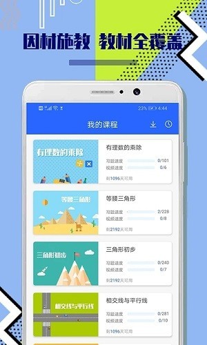 七年级数学专门为七年级想要补习数学的用户们设计的线上学习软件,涵盖了七年级数学的所有知识点和典型题目,可以根据用户的实际学习情况来为你量身定制最合适的学习计划,而且软件中的各类材料章节内容分类明确,代数、几何等各个知识点都有详细讲解和例题解析,还有专业数学教师在线为你一对一提供指导,可以帮助学生更好地理解知识点,掌握专业的解题技巧,全新学习进度可视化功能也能够极大的节省你的学习时间,提高你的效率。