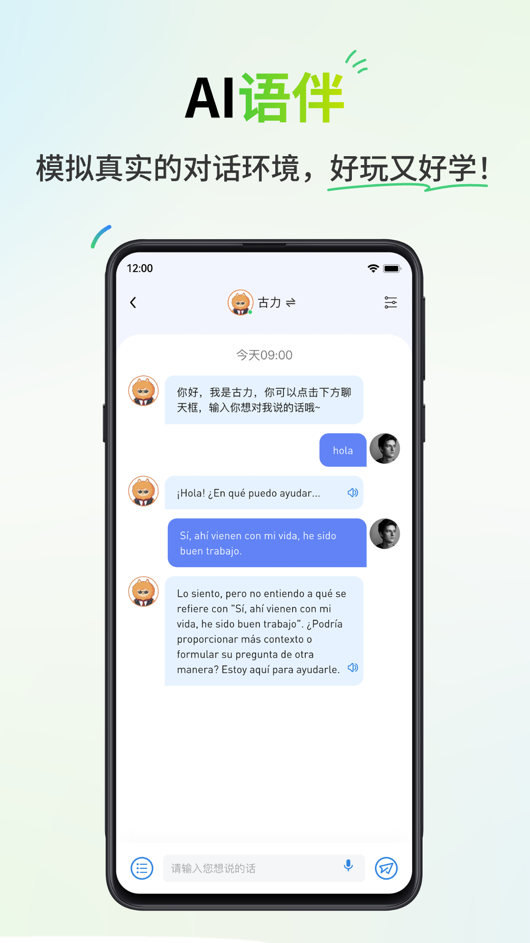 2、字母学习:西班牙语真人标准发音,可录音跟读学习,西班牙语字母、西班牙语发音翻译基础全掌握。