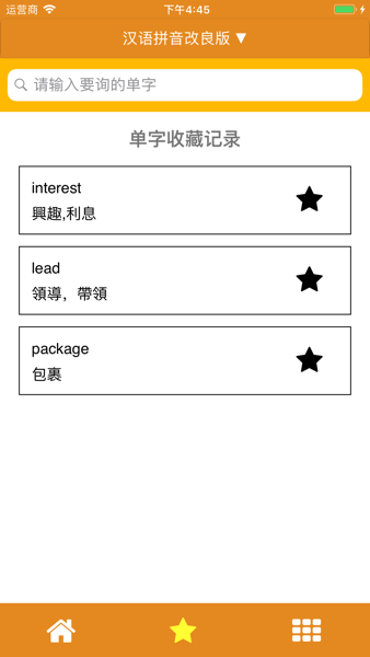 6、加入收藏:您可以将常用的单字和词组加入收藏,方便随时查阅。