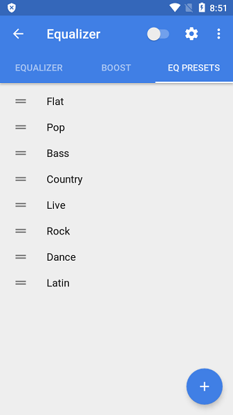 5、此外,该应用程序提供了一个功能齐全的均衡器,可以创建您自己的预设并稳定您喜欢的任何音乐流派。