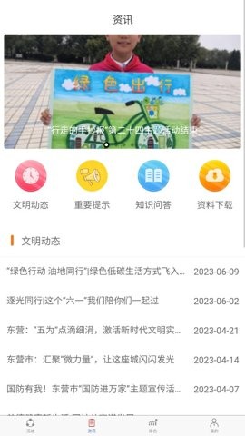 3、切换到【资讯】页,则可以看到文明动态、重要提示、知识问答等板块。