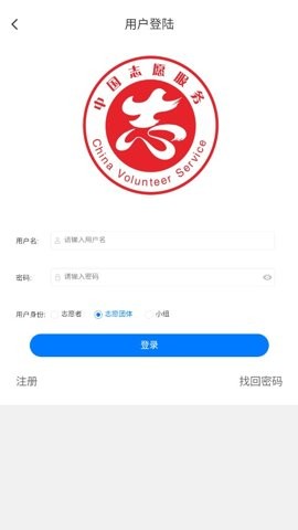 5、用户点击【我的】页面,进行志愿者登陆后就可以使用软件的全部功能。