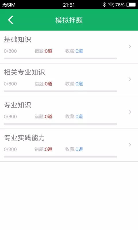 4、可以清晰明了的查看每次做题的情况,展示不同列表中错题、收藏的数量信息;
