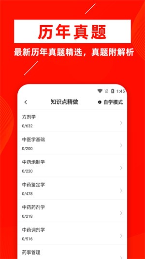 中药士牛题库覆盖中医药基础知识、医药管理等八个科目的学习内容,通过模拟考试和押题功能可以最大限度的评测出用户的真实水平和各类学科的学习进度,历年考试真题和高频考点在这里都可以随时浏览,平台也会不断上新优化,实时为你推送最新最全面的考试资讯,帮助用户进行最全面的备考复习服务,而且不同的章节和题型训练的难度不同,适合不同学习阶段的用户使用,反复练习并记录你的错题,可以有效提高你的学习效率,提高应试能力。