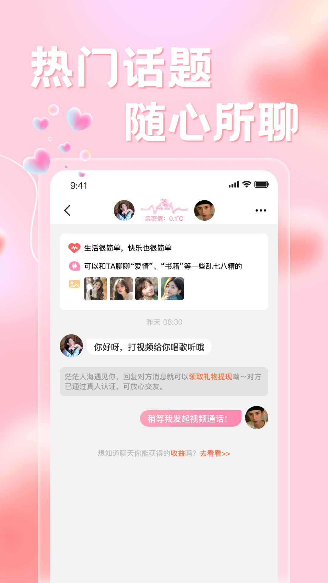 同城陌探app是一款非常不错的真人交友平台,在这里有非常多形形色色的人,线上真人认证,放心畅聊,快速找到属于自己的圈子,在这里结识到自己的有缘人,在这里不管是线上聊天、交友还是找对象都是非常不错的,喜欢的小伙伴们快来下载体验吧!