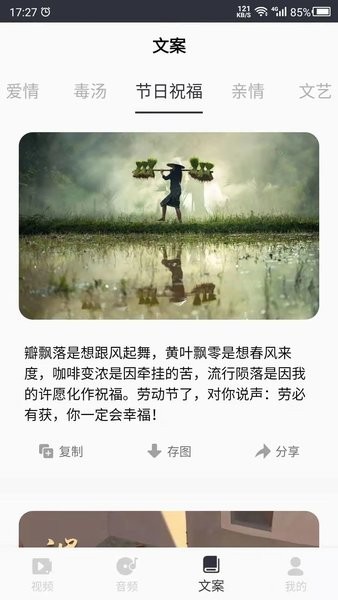 句文案支持一键复制,让你轻松分享文字的感动。应用还提供简易提词器,定制你的专属台本。
