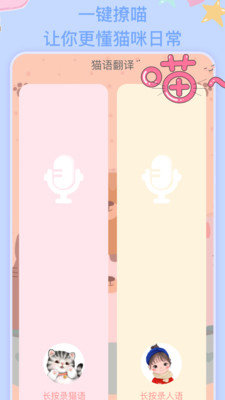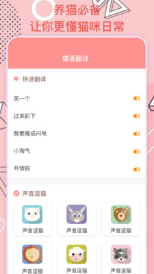 猫咪翻译器集成猫语翻译、人猫交流等功能。即时翻译猫语,有趣的猫语狗语翻译器,专门为您提供的人猫交流器、人狗交流器。养猫养狗必备软件,让你更加了解你的爱宠哦!