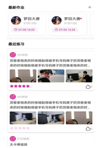 2.在卓小舞陪练app中,老师还可以在线的为学生发布各种的课后作业,以及最近的练习项目都可以在软件中获得十分好的在线查看。