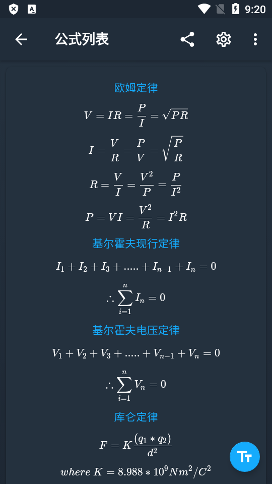 1、完整的公式列表可用于每个计算以供快速参考(注意:此功能仅适用于 PRO(完整版)用户)。