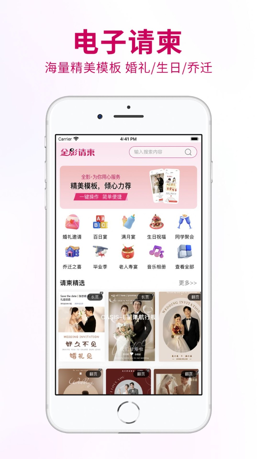 1、拥有各种场合需要的多类型请柬模板,包括婚礼请柬、生日请柬、Baby Shower请柬等;