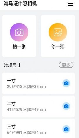 海马证件照相机是一款有着很全面的拍摄功能,而且这里的尺寸选择十分丰富,还有各种不同的模板为大家提供,一站式满足用户的不同需求,在多个不同场景中均可以很好地满足大家的序曲,还有很多其他的美颜服务等你来体验哦。
