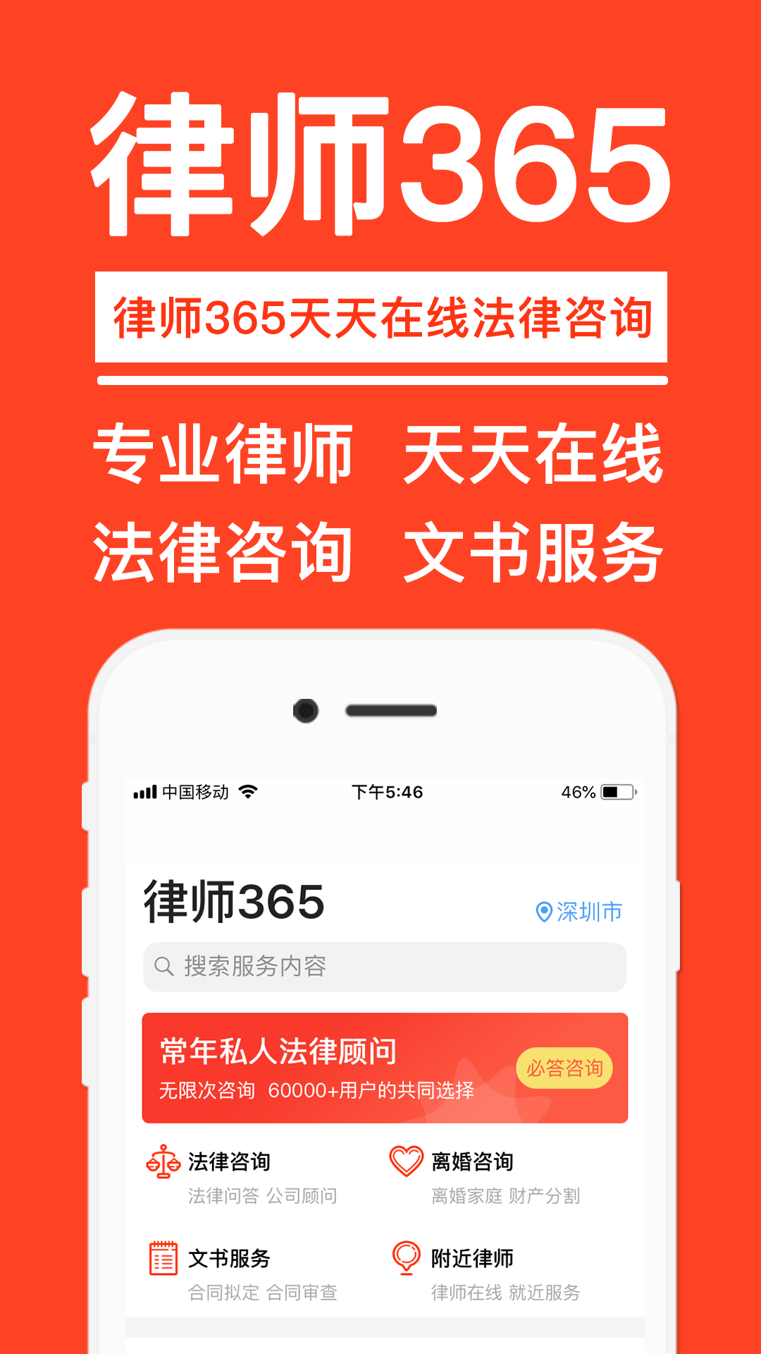 律师365由深圳市才牛网络技术有限公司设计,涵盖全国各大重要城市,超多专业知名律师入驻,还有专业的心理辅导师,专门为广大用户提供专业的法律资讯服务和帮助,软件服务板块分类详细,用户可以在平台专门的交流板块上发布你想咨询的法律问题,或是选择直接和律师电话交谈,清楚表达你的诉求,平台和律师也会根据用户的实际问题来为你进行全面分析,并为有需要的用户提供切实的法律援助,维护广大群众的合法权益。