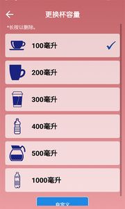 通过体重和性别自定义每日喝水的目标,软件会根据目标自动生成合理的喝水计划,另外可自定义喝水开始和结束时间,自定义铃声和方式等。
