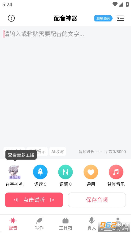 《配音神器》是一款强大的AI文字转语音软件,内置上百种高度拟人、富有情感的AI主播声音,只需输入文字,秒级生成专业、流畅、自然的配音,让你的内容“声”动起来!无论你是内容创作者、营销专家、教师还是普通用户,「配音神器」都能成为你的得力助手。