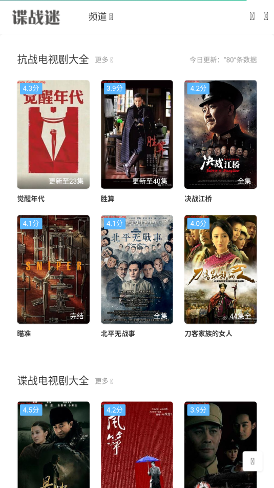 谍战迷app作为一款谍战影视剧平台,是一款非常复合观众喜爱的影视资源,在这里有着不错的谍战影视能够看到不错的优质影视资源,软件内根据年代划分了不同的区域,在这里大家能够尽情的体验到谍战影视的观影,喜欢看抗日的用户快来这里下载吧!
