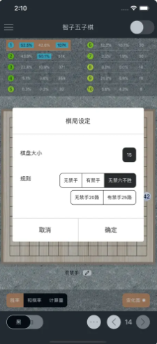 五子棋计算器也叫做智子五子棋是一款五子棋辅助神器,软件能够帮助你学习五子棋玩法规则,模拟各种对局优势,根据算法算出每个点你的获胜几率,很全面的展示对局过程中多种可能性;软件很强大的智能云端引擎,一键进入棋局,没有繁琐的配置等,用户进入就可免费使用,快速出结果,需要的用户来下载试试吧!