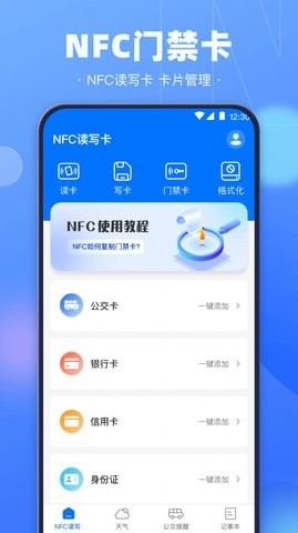 NFC电子钥匙是一款非常好用的NFC读写工具,这款软件的功能十分强大,可以支持各种智能卡的读取,无论是门禁卡还是公交卡都可以录入,让你的手机秒变IC卡,再也不用携带一堆卡出门了,一部手机就能全部搞定,方便又快捷,感兴趣的朋友快来下载体验吧。