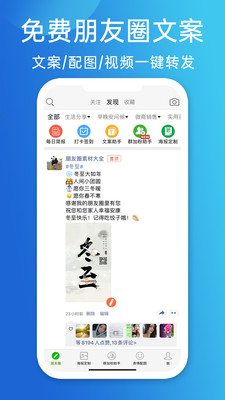 1、每日更新大量热门朋友圈文案配图,累计千万条朋友圈素材足以满足你所有的发圈需求。