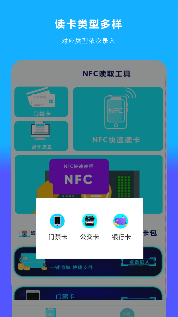 1、支持多种类型的卡片读取,包括但不限于门禁卡、公交卡、银行卡等多种NFC兼容卡片。