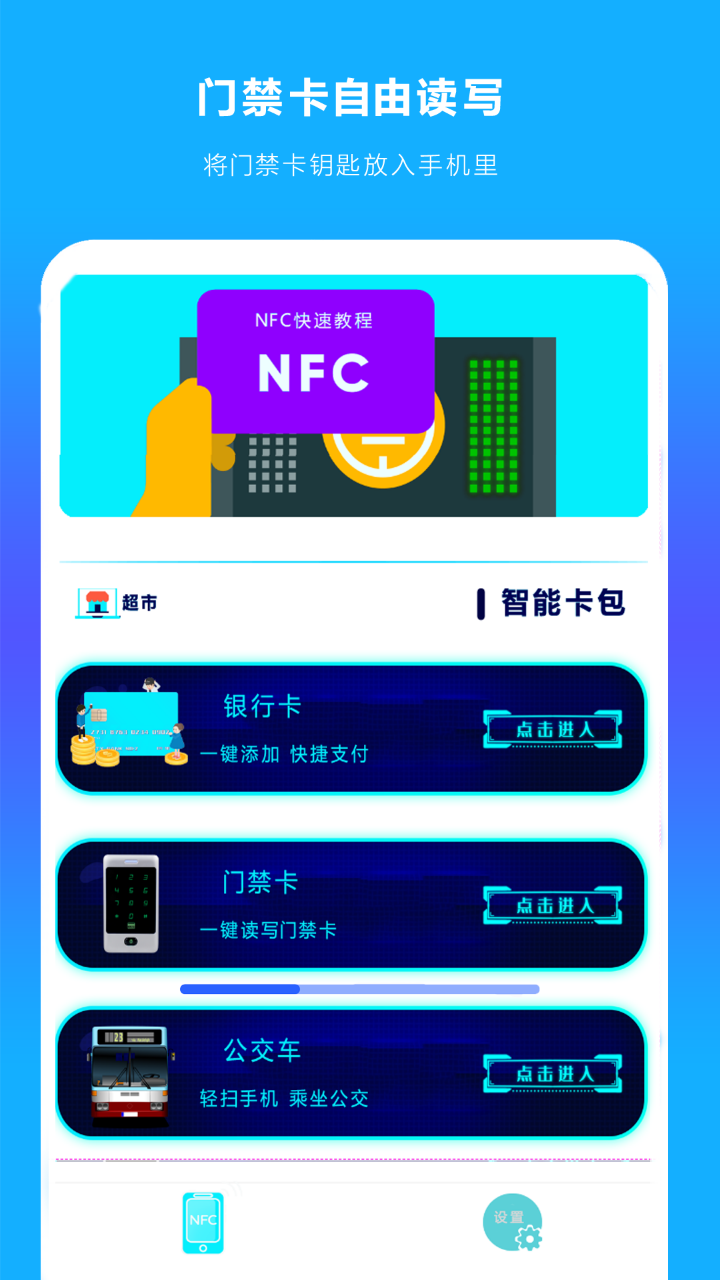手机NFC读扫是一款功能丰富强大的的NFC门禁卡读写工具,软件可以支持多种类型的卡片读写,内置详细专业的操作步骤,可以及时为你录入并保存用户标记的重要信息,为你提供更加便捷高效的NFC专业功能,全部服务免费使用,无广告无弹窗,感兴趣的小伙伴们快来下载吧!
