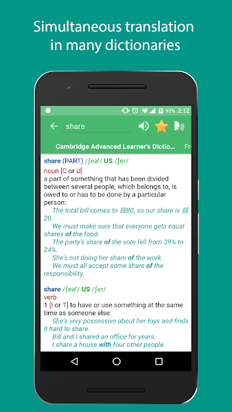 9、该应用程序保存您的翻译历史记录,并允许您在可以查看您喜欢的单词时保存您喜欢的单词。