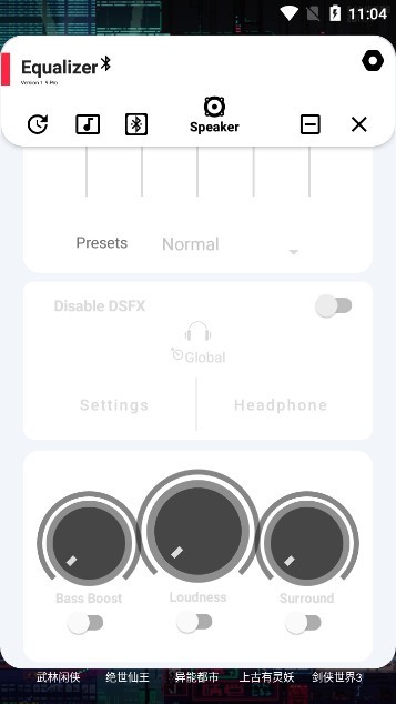 4、支持型号选择,支持音量增强,低音选择,数字环绕的效果,可视化调节等操作,音质有提升两个级别了