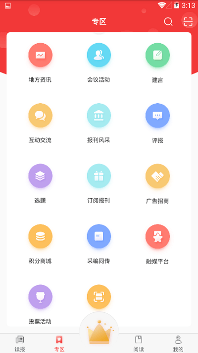 1、提供文章、版面两种阅读方式,并可查阅往期内容;