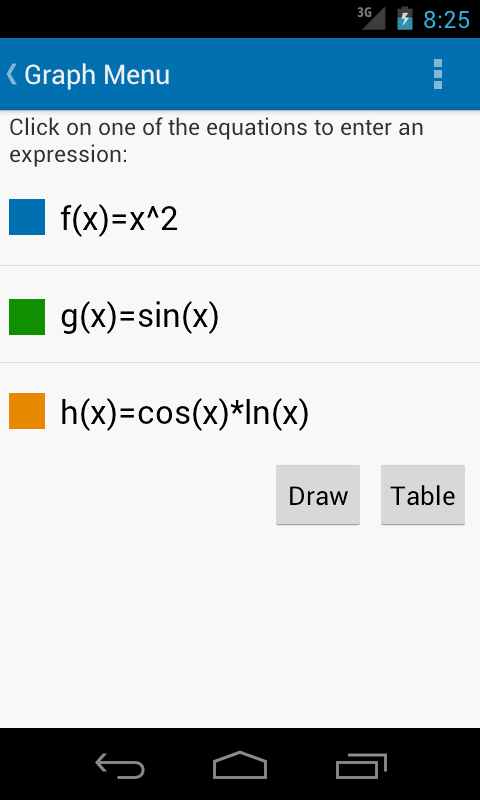 按下右上角的菜单按钮(三个点)。如果您想要弧度,请勾选“使用弧度”复选框。如果未选中,则Algeo将使用度数。但是请注意,制图始终处于弧度模式。
