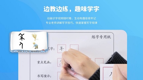 2、动画识字视频随时看,生动有趣容易牢记,专业老师讲解写字技巧,快速掌握写字规律。