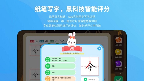 2、对每个字进行评价和打分,纸笔写字,黑科技智能评分,纸笔真实触感,App实时同步写字过程;