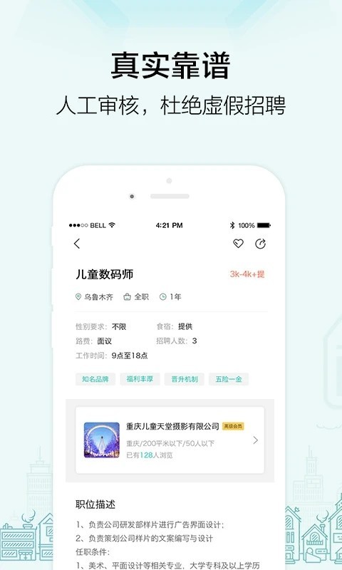 2、真实靠谱:工作信息人工审核,杜绝黑中介和虚假招聘