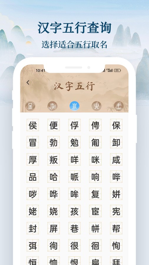 1、汉字五行查询,选择适合五行取名,十分的便捷。