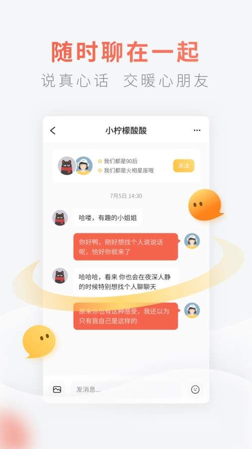 3、随时聊在一起,灯遇交友app下载后说真心话交暖心朋友;