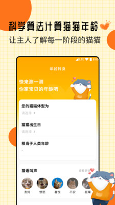 支持猫咪年龄与人类年龄的转换,帮助用户了解猫咪在不同年龄段的生长特点。