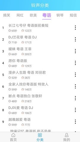 3、多种铃声分类:将音频素材按照不同的分类列出,使用户可以轻松找到符合自己口味的铃声。
