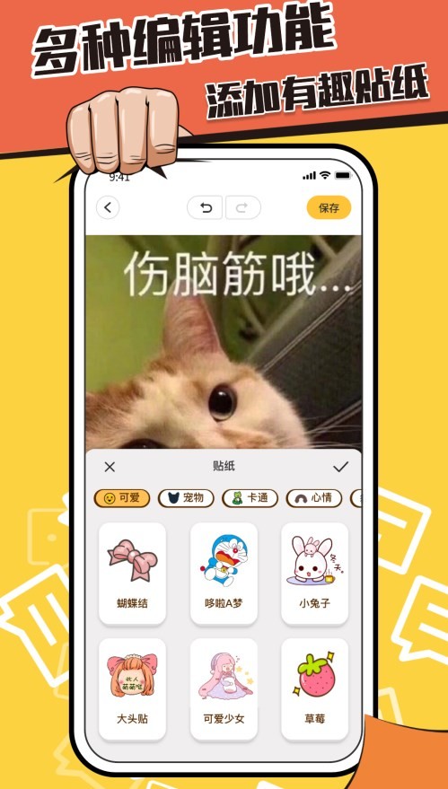 按照自己喜欢的题材个性制作表情包,将原创的表情包保存或者是下载到手机当中,方便在聊天时来使用,让其他人感觉自己制作的表情包新颖好玩。