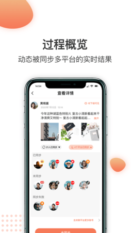 解释:您在发布的朋友圈会被自动导入同步神器,并可被好友一键同步到自己的或其他社交平台中。从此,的朋友圈就是您的朋友圈。