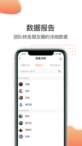 解释:同步神器提供团队管理功能,您可创建自己的营销团队,同时接收成员同步您朋友圈的数据报告。团队执行动态轻松掌握。