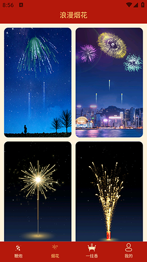 提供有多种烟花播放场景,用户可以选择喜欢的场景来播放烟花使用。