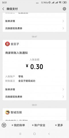3、金豆子首次满0.3元即可提现到,之后满0.5元、1元、5元、10元都能提现