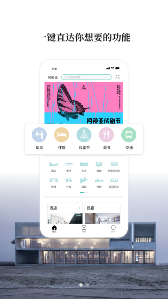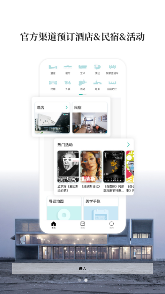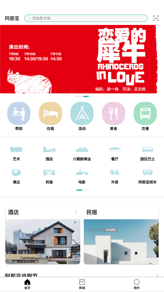 3、玩在阿那亚图书馆、礼堂预约,戏剧节等活动报名,导航带你玩转园区。