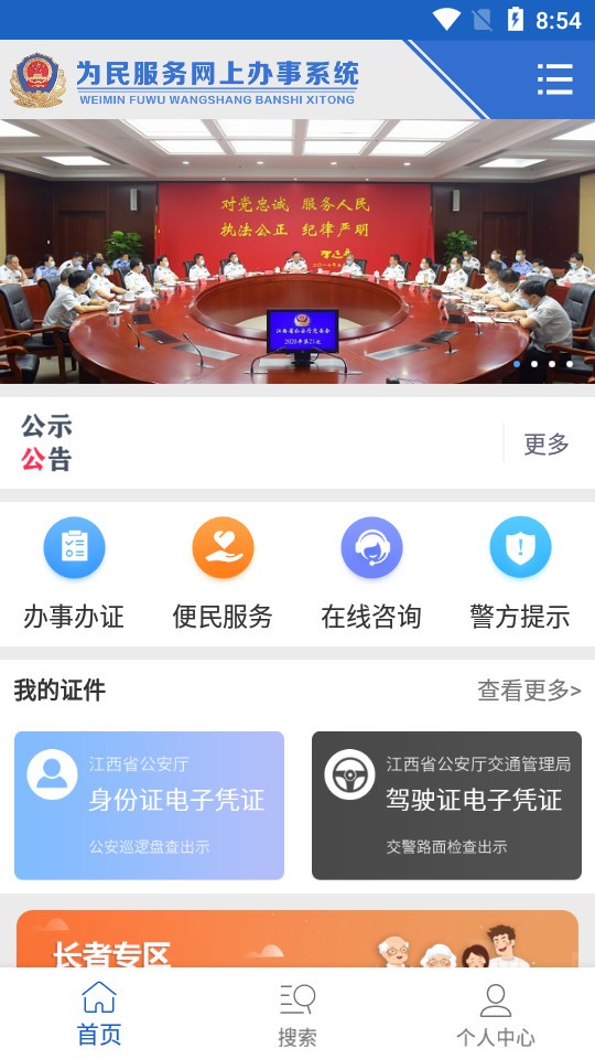 江西公安又叫赣警办,是一款由江西省公安局推出的的移动app,里面用户通过软件就可以进行行政审批、办理证照、便民服务、警务资讯等一站式服务,还可以帮助自己查询自己的办理业务的办理进度还可以直接用软件报警喜欢的话点击下载吧!