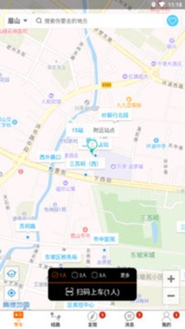 1、进入眉山巴士生活扫码上车APP,然后选择乘车区域;