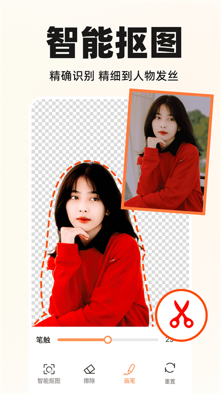 方便实用的P图抠图APP,可以帮助您AI一键消除杂乱背景,拯救废片,还能一键抠图,帮你抠出绝美证件照。更有拼图.一键构图功能,让你拥有高级感朋友圈素材。更多功能快来下载体验吧!