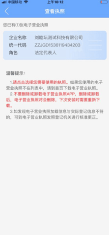 2、不要删除或卸载电子营业执照APP,删除或卸载后,电子营业执照将会删除,下次安装时需要重新下载