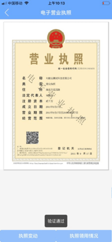 2、电子营业执照验证功能: