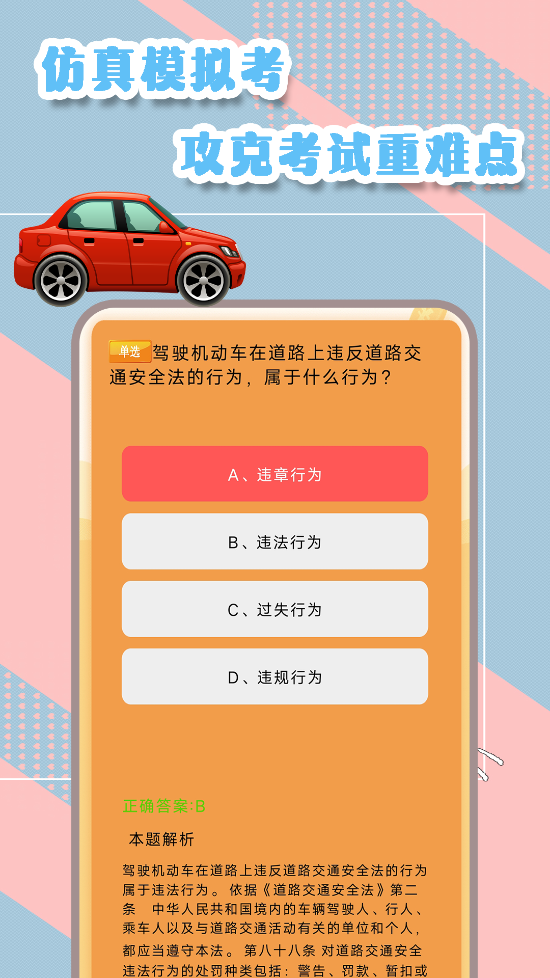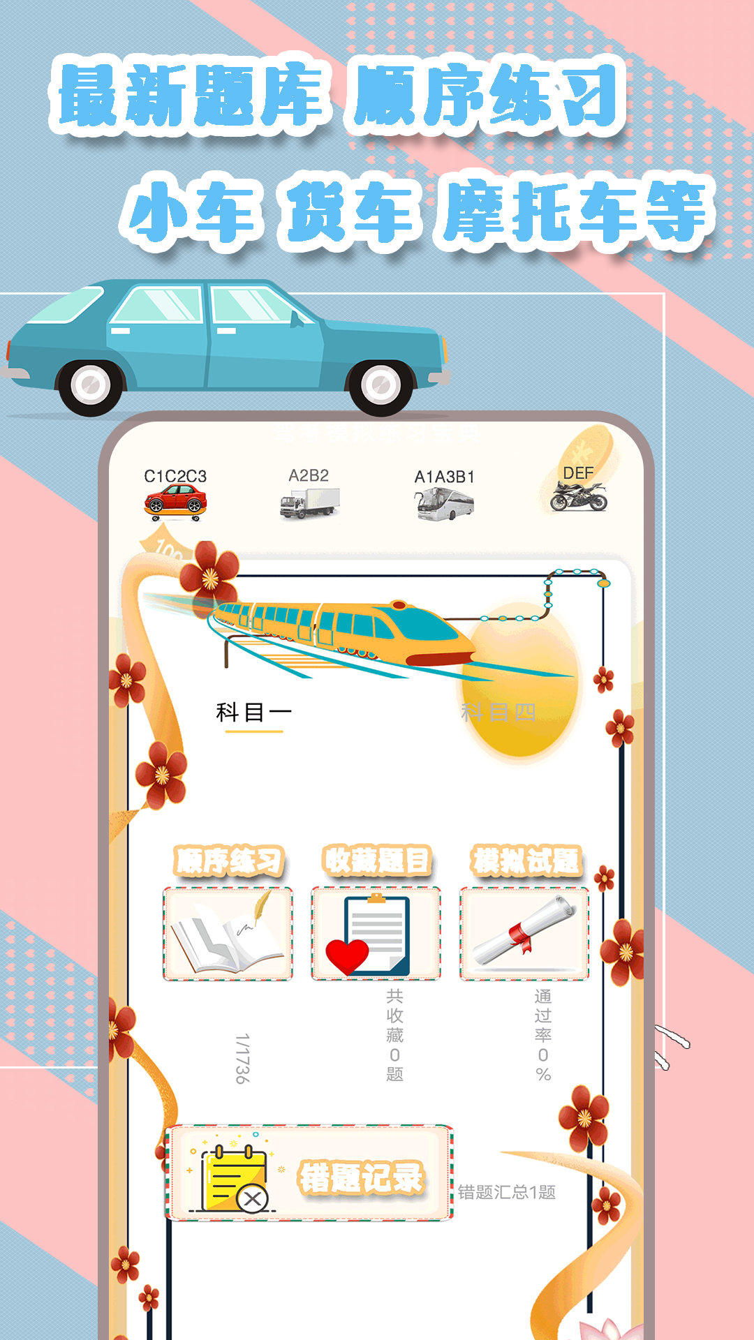 全方位为你学车保驾护航,切实帮助驾校学员提高成绩顺利通过考试!百分百还原试题,模拟真实考试场景,同时根据个人做题记录,保存错,方便复习纠正错误!全方位练习,科一、科四理论题,模拟测试!是您备考驾照的理想工具!祝你早日考得驾照!