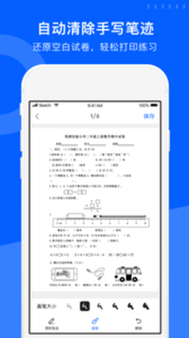 1.自动清除手写笔迹,高精度还原空白试卷保存和导出:
