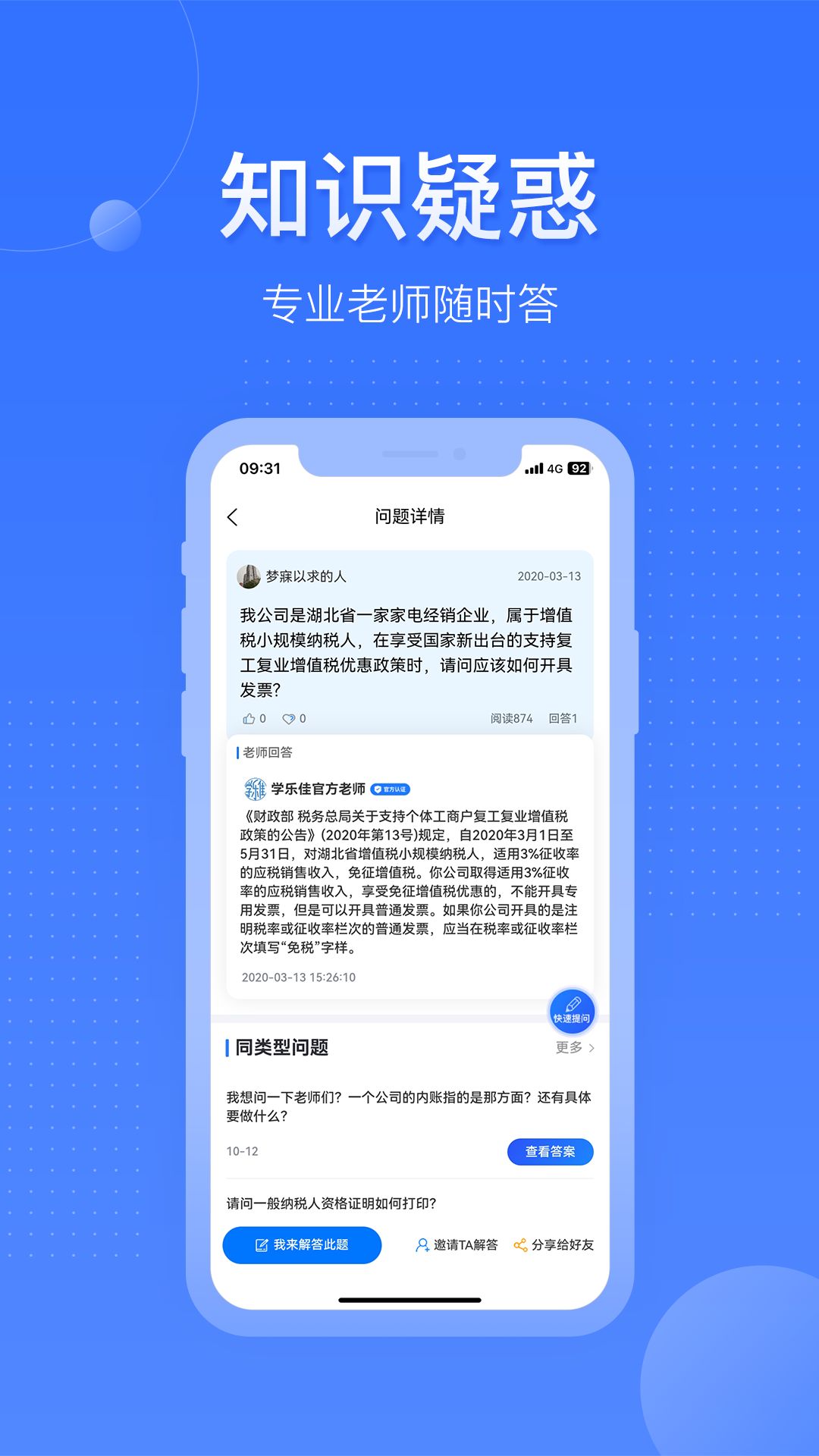 遇到会计实操.会计考证学习难题,可随时在线提问,百名资深财会老师在线解惑,及时解决您实际会计工作的做账.报税.财务管理等实务疑难与会计考证的重点.难点.易错点等疑难问题;