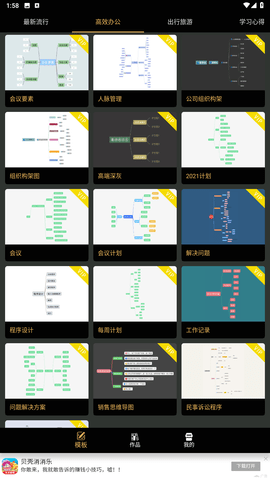 1、导图模板:提供五个热门分类,100多个精心设计的模板,涵盖思维导图的不同使用场景,助你快速上手。